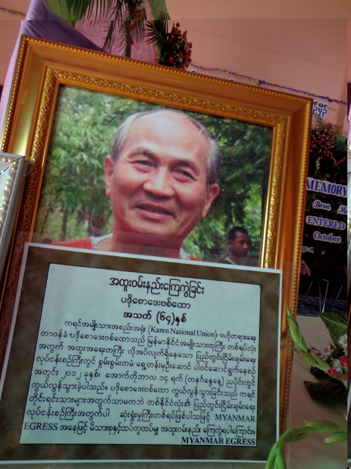 ထို္င္းႏိုင္ငံ မဲေဆာင့္ၿမိဳ႔ ဆာသူးေလေက်ာင္းတြင္ ကြယ္လြန္သူ ေကအဲန္ယူ ေခါင္းေဆာင္ ပဒုိေစာေဒးဗစ္ေထာ၏ သတိရေအာက္ေမ့ဖြယ္ ဆုေတာင္းပဲြ က်င္းပျပဳလုပ္
